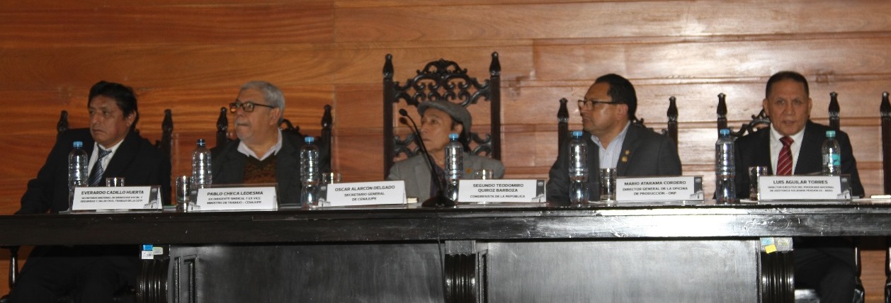 Participaron como expositores, además de la participación central del congresista Segundo Quiroz Barboza, los profesionales siguientes: Mario Atarama Cordero, Director General de la Oficina de Producción de la ONP; Luis Aguilar Torres, Director Ejecutivo del Programa Nacional de Asistencia Solidaria de Pensión 65 – MIDIS; Oscar Alarcón Delgado, SG del Sindicato CENAJUPE; Pablo Checa Ledesma, Ex dirigente CGTP y ex Vice Ministro de Trabajo y Everardo Cadillo Huerta, Secretario Nacional de Bienestar Social de la CGTP. A continuación, publicamos la intervención del SG del Sindicato CENAJUPE, Oscar Alarcón Delgado.